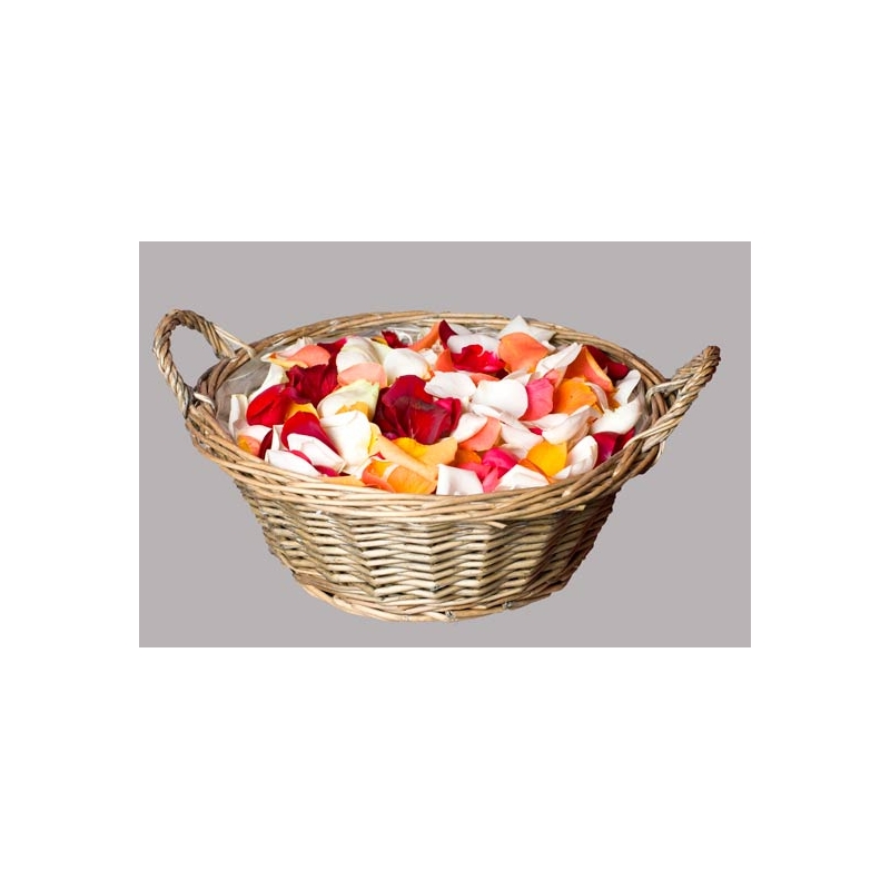 Panier de pétales de roses multicolores (diamètre du panier 28 cm).
